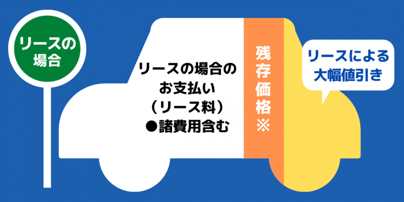 リースは残存価格(リース終了時の予想下取り価格)を差し引いて計算しますので、月々の支払い額を抑えることができます。