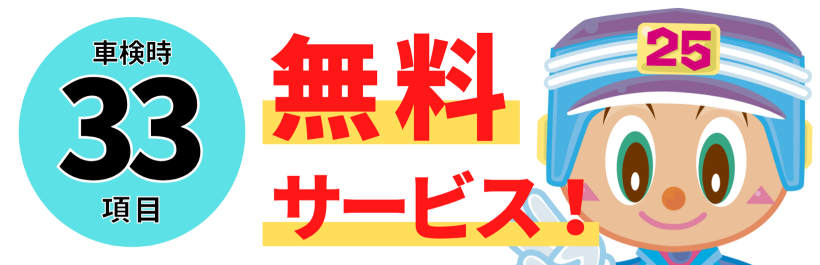 クリア25車検は、安心の105項目の分解・検査・点検に加え、お得な33項目の調整・補充・注油サービスつき!