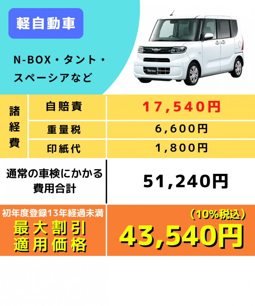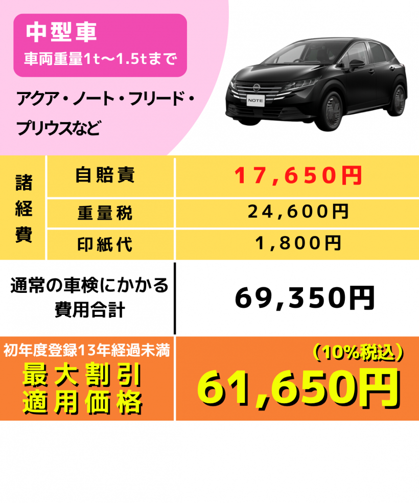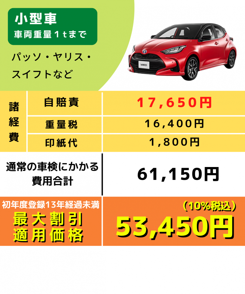 【注】新車登録から13年を経過したお車は、上記重量税とは異なります。